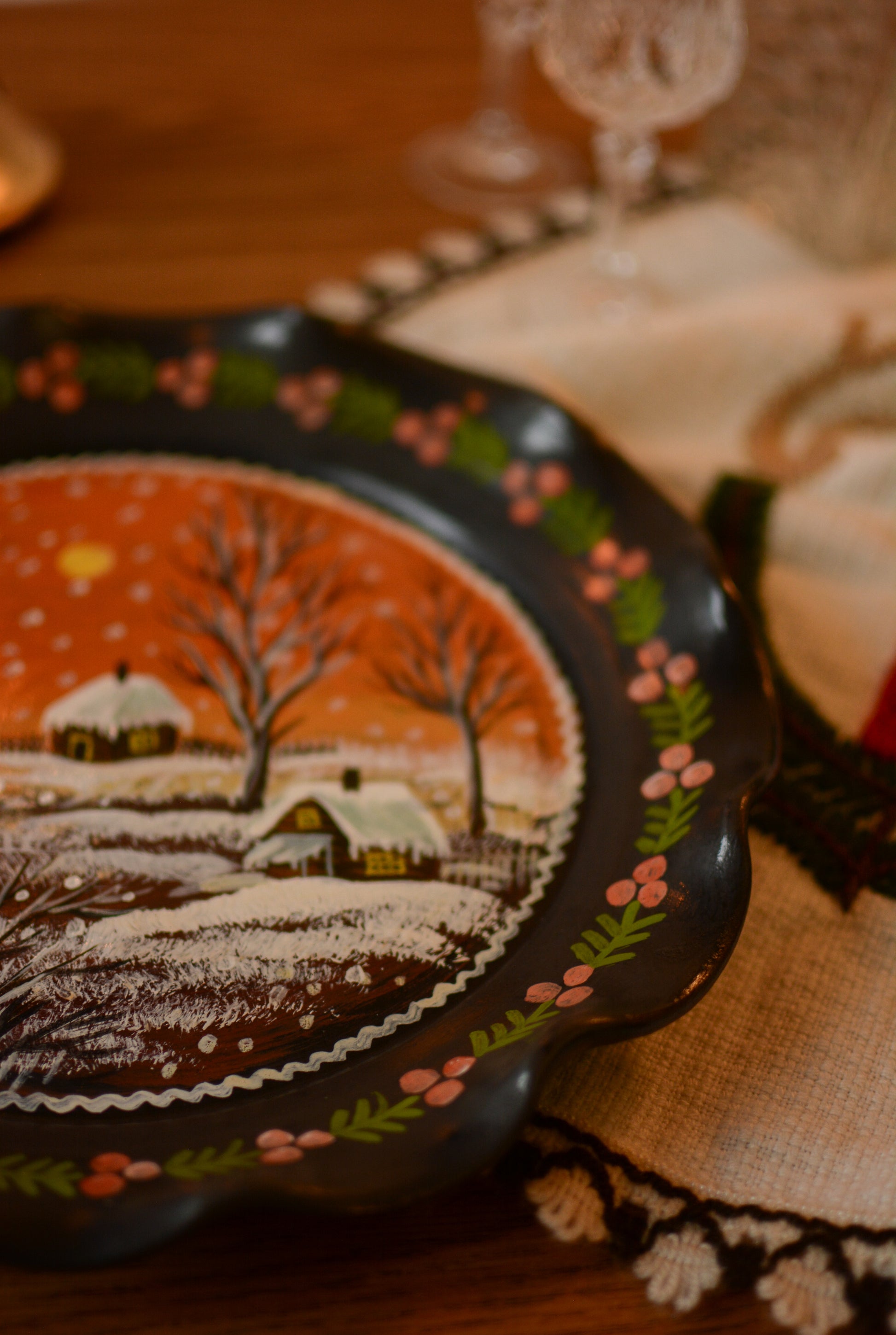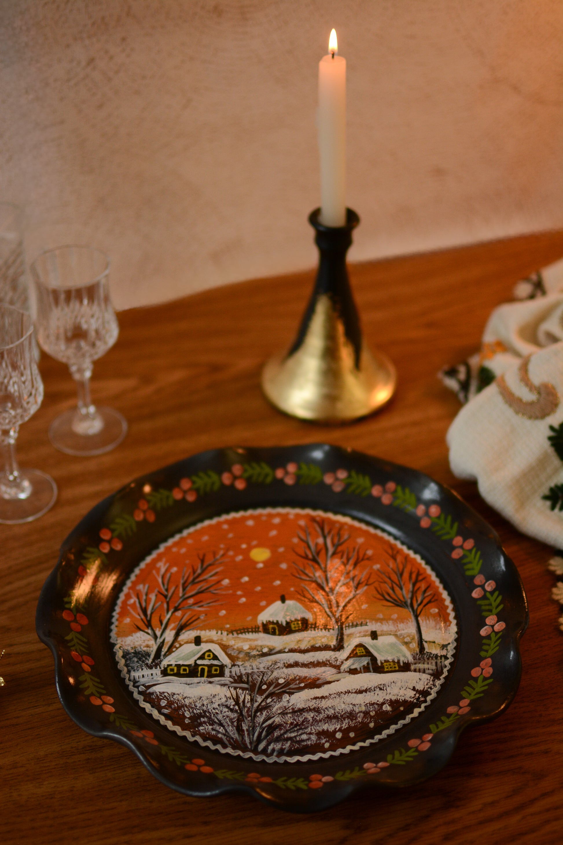 Rare pièce en céramique noire avec son minutieux décor peint à la main. Savoir-faire roumain vieux de plusieurs siècles, unique aujourd'hui.